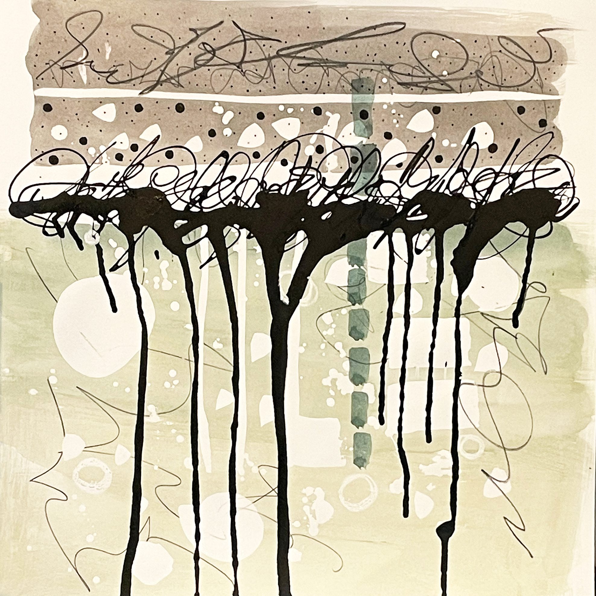 Sharon is an abstract painter drawn to the fundamental aspects of creating art. No matter whether the medium is hot beeswax, ink, watercolor, oil, acrylic, combined with asemic writing or mark making, my curiosity constantly challenges her to push the boundaries of my limitations.