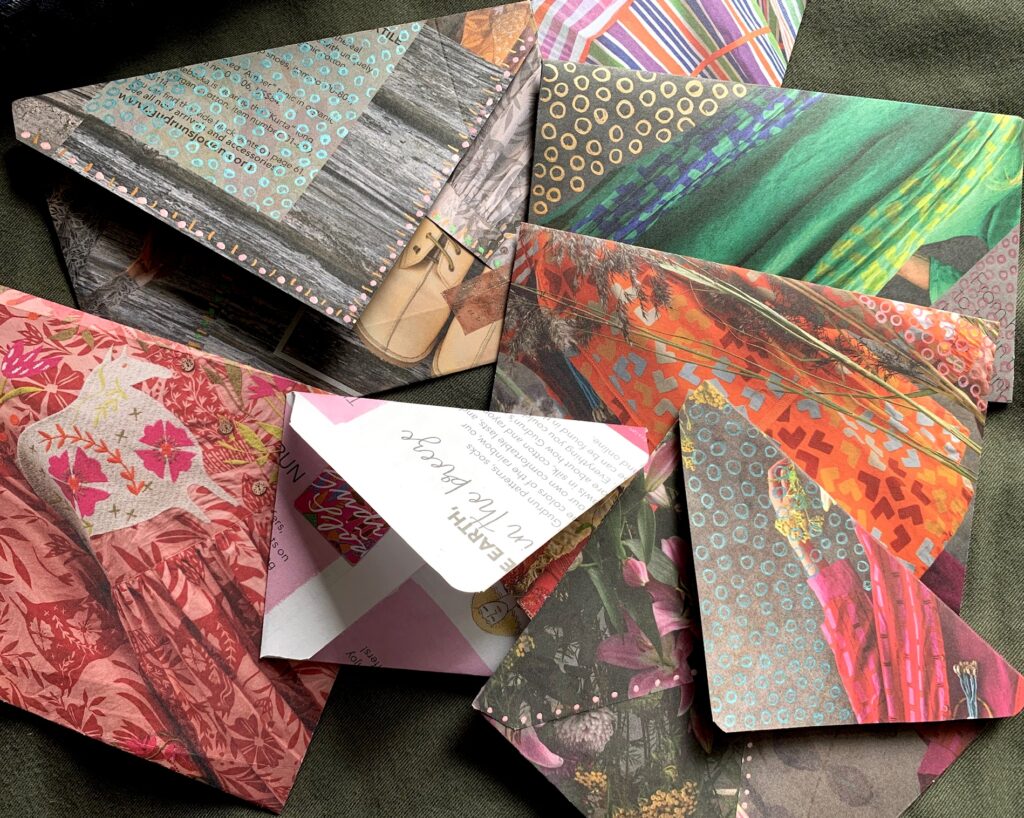 Look for colorful papers. Add polka dots or not. Imagine how this mail will brighten someone else’s day and the postal workers as well! Make a bunch!
