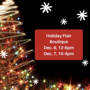 Holiday Flair Boutique show offers fresh wreaths and greenery from the Floretum Garden Club, handmade jewelry, ornaments, quilts, gift baskets, homemade jams, and vintage items. This is a great place to find special, one of a kind gifts!