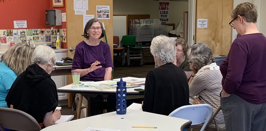 We have lots happening on Mondays beginning with our ongoing Watercolors class from 1 to 4 pm with instructor Mary Anderson. Mary is an experienced teacher and a member of Women Painters of Washington and an award winning painter. She guides students gently and humorously through the challenges of painting with watercolors every Monday. Each session is just $20 and drop-ins are welcome! More info is here: https://artworks-edmonds.org/classes/painting/